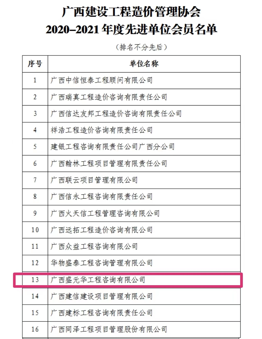 據悉,廣西盛元華至2019年以來蟬聯獲得廣西建設工程造價管理協會的先進單位會員,這不僅是行業協會和社會各界對廣西盛元華篤行不怠,砥礪奮進為廣大客戶提供高品質服務的肯定,更激勵了每一位盛元華人以“誠信為本 有諾必踐”為宗旨,在未來的工作中不斷提高服務品質,提高行業競爭力而不懈努力!