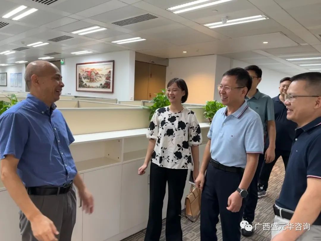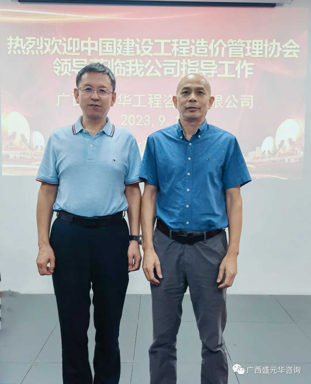 9月16日,中國建設工程造價管理協會秘書長王中和一行在廣西壯族自治區建設工程造價站一級調研究員陳挺、廣西建設工程造價管理協會秘書長溫麗梅等陪同下,蒞臨我集團公司展開考察調研。公司董事長方元煥熱情接待了到訪的領導,并就當前經濟形勢、行業改革、企業發展等進行座談。公司總經理陳浩、常務副總經理謝瑩春、副總經理陸冬、黃藝、總工程師謝宇翔參與座談。