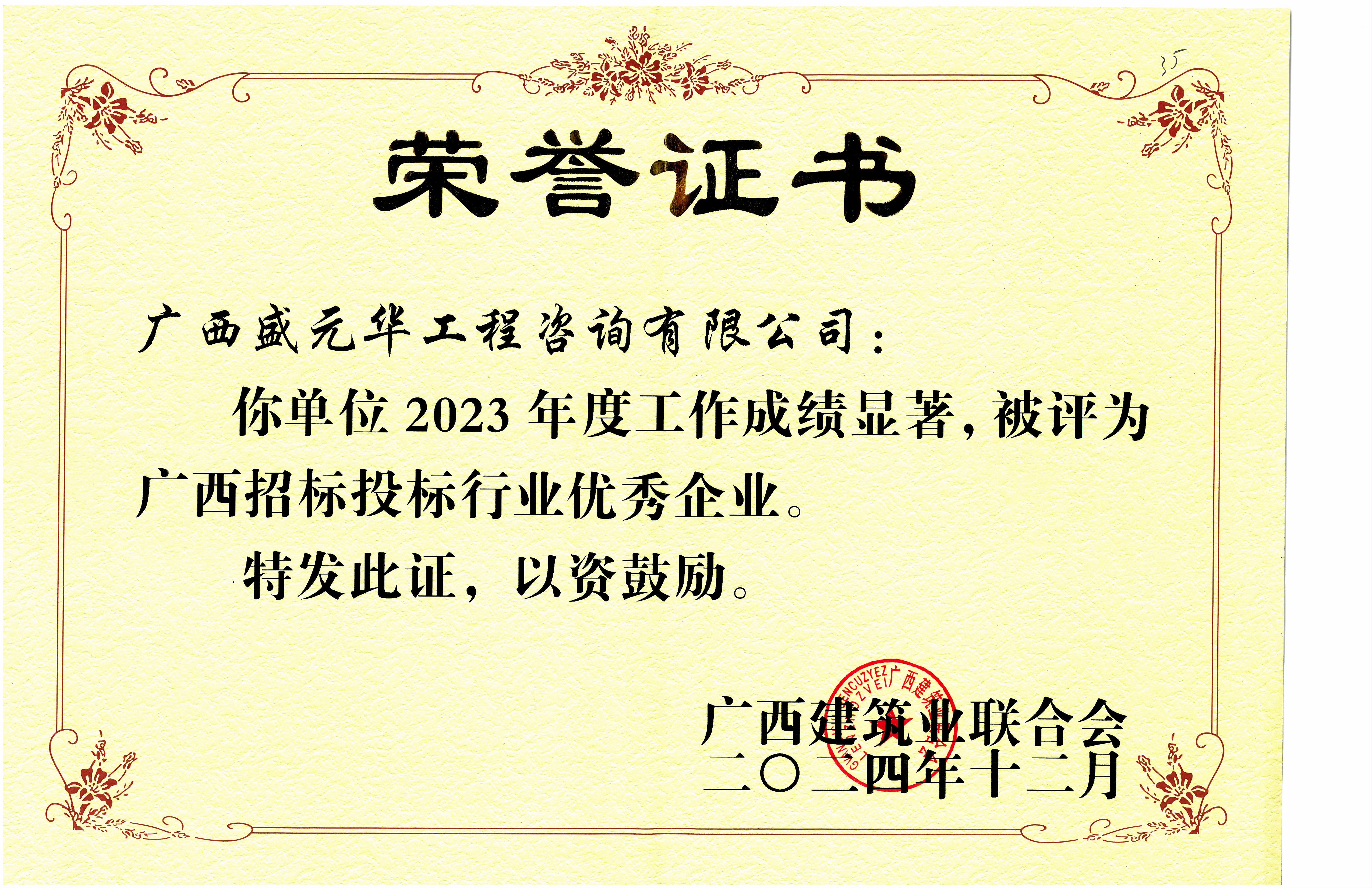 | 廣西盛元華工程咨詢有限公司獲評廣西建筑業聯合會2023年度廣西招投標行業優秀企業 |
